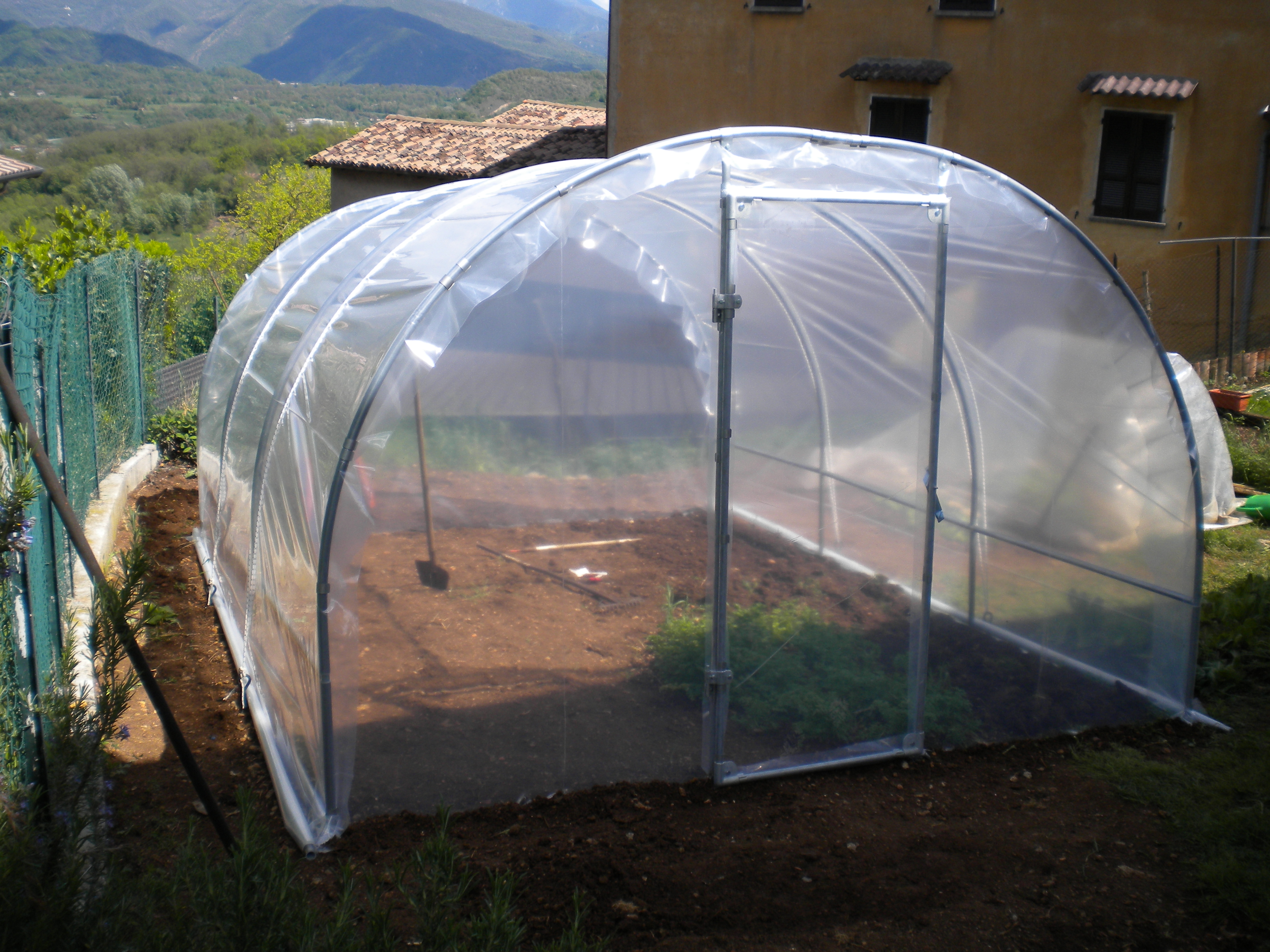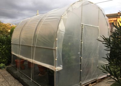 serremaga è una serra personalizzata di lunghezza 7,9mt x larghezza 3,5mt ancorata su muretti pre-esistenti